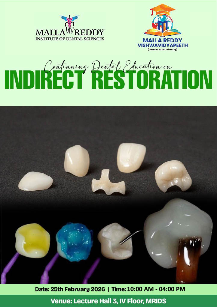 Malla Reddy Institute of Dental Sciences (MRIDS) is a private dental college established under Chandramma Educational society in the campus of Malla Reddy Vishwavidyapeeth – MRV (Deemed to be University) located at suraram, ranga reddy district hyderabad. The Institute is 20 kms from Secunderabad and Hyderabad Railway stations. This is well connected by buses from different places. The Medical College Hospital serves the rural population situated in and around villages. The College campus is vast provided with all the facilities to make the students comfortable while learning.