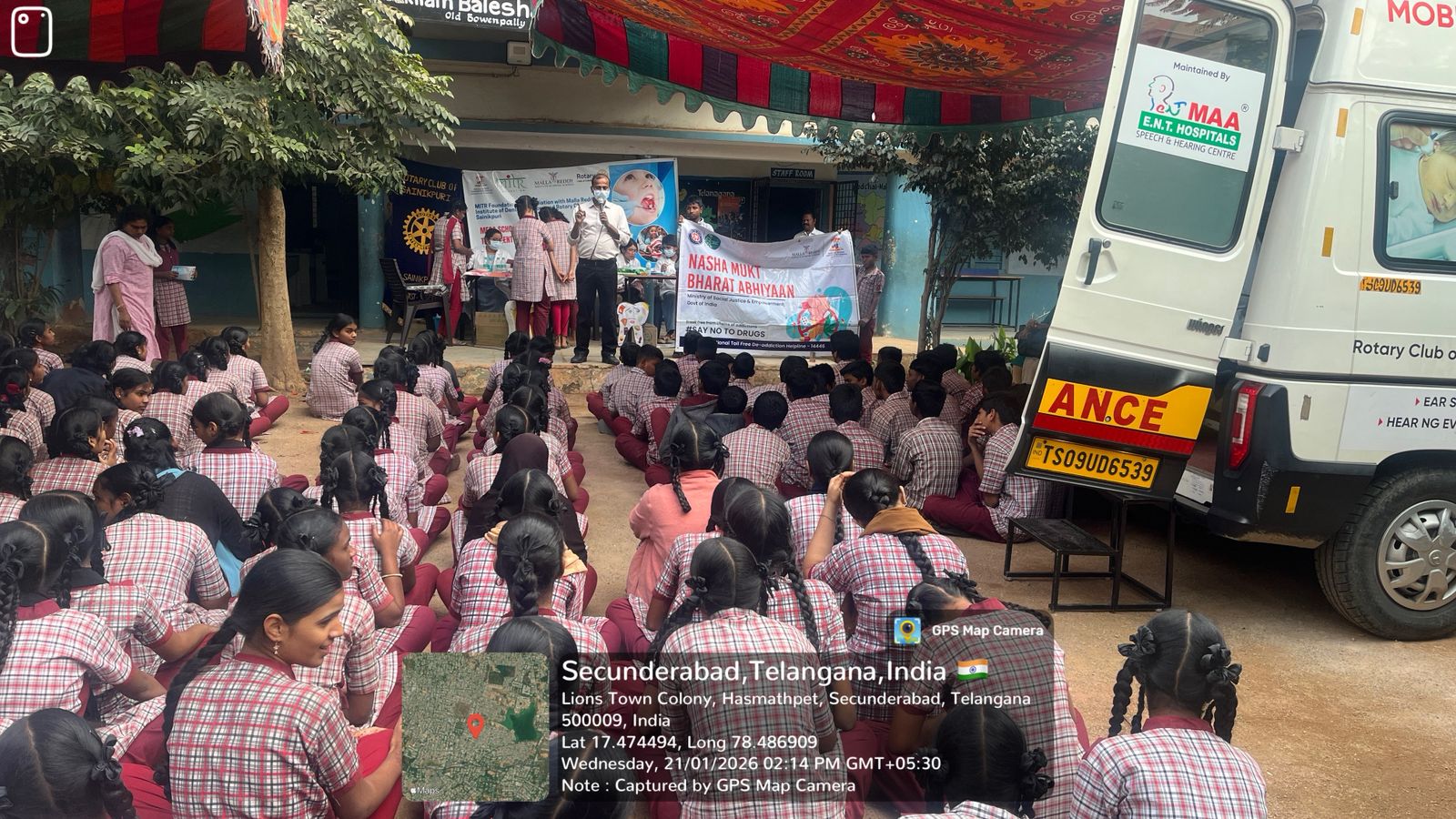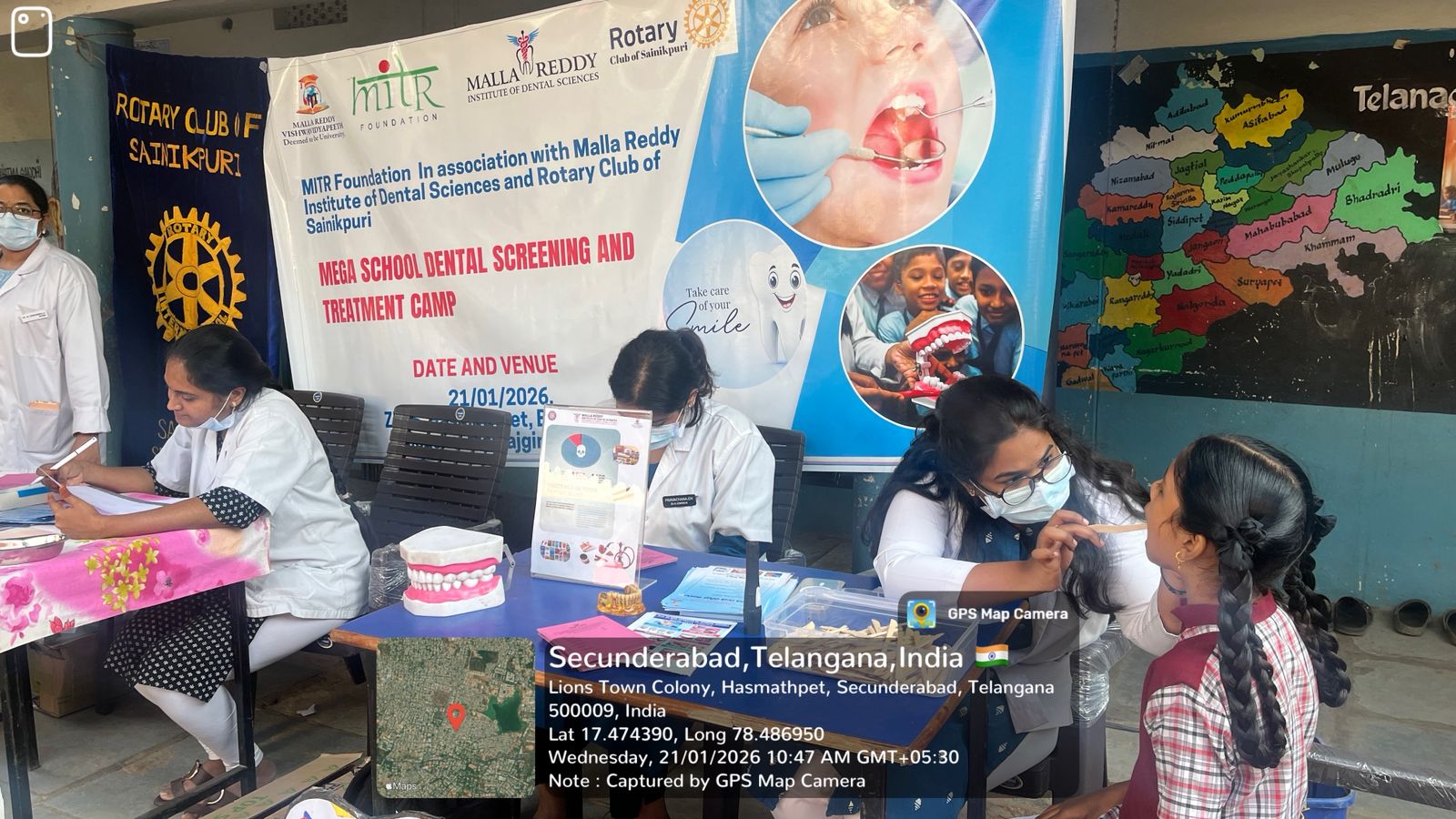 A Special Oral Health Screening and Treatment Program was conducted at ZPHS Hasmathpet on 21/01/2026 and 27/01/2026 at two intervals .The program was organized by the Department of Public Health Dentistry, MRIDS, in collaboration with the Rotary Club, Sainipuri and MITR Foundation. The initiative aimed to improve oral health status among school children through awareness, screening, treatment, and structured follow-up.